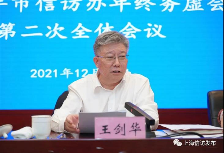 王剑华强调,要深入学习贯彻党的十九届六中全会精神和习近平总书记关于加强和改进人民信访工作的重要思想,以破除难点、再谱新篇的勇气,推动信访工作模式重塑、转型升级。一是要正确看待当前的形势和任务,切实认识上海信访的职责使命,发挥开路先锋、示范引领的作用,在健全完善、突破攻坚、重点发力、聚力提升上下功夫;二是要坚持以人民为中心的发展思想,虚心听取群众意见、主动发现群众需求,把提升群众的满意度、体验度作为创新突破的重点和主要路径;三是要打造高质量发展的战略支点,正确把握全过程人民民主的政治要求,进一步增强工作的预见性和计划性,提升“家门口”信访服务体系功能;四是要凝聚、筑牢高质量发展的广泛合力和坚实基础,畅通内外联动、上下联动、内部联动的工作渠道,形成高质量发展的强劲势头;五是要建成高质量发展的中坚力量,建强市信访办干部队伍,以优秀的政治意识、卓越意识、责任意识和底线意识,在服务群众的第一线务实求实,在新的赶考路上拿出再起宏图的决心和事不过夜的劲头,为实现上海信访高质量发展继续奋斗。